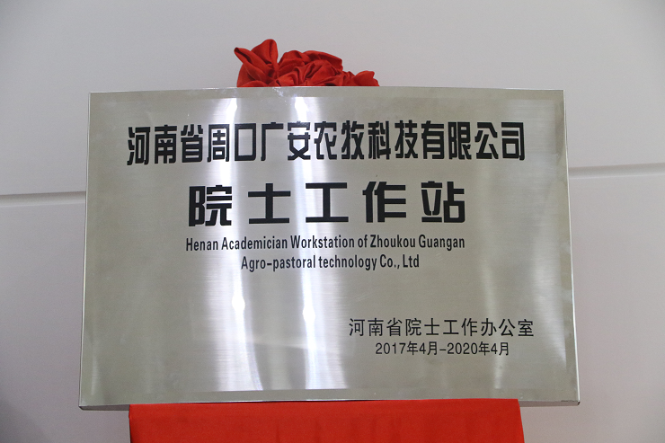 2017年,河南省科技廳發(fā)布《關(guān)于設(shè)立 2017 年第一批省院士工作站的通知》(豫科人才【2017】6 號),批準(zhǔn)設(shè)立河南省周口廣安農(nóng)牧科技有限公司院士工作站。 周口廣安農(nóng)牧院士工作站聯(lián)合以中國工程院李德發(fā)院士為核心的創(chuàng)新團隊,主要通過開展畜禽新型飼料科學(xué)研究及動物營養(yǎng)代謝調(diào)控研究,聯(lián)合開發(fā)新型安全高效環(huán)保飼料、畜產(chǎn)品。并通過聯(lián)合研發(fā)培養(yǎng)、引進創(chuàng)新型人才和高層次研發(fā)人才,深入開展合作,促進科技成果轉(zhuǎn)化,提升社會經(jīng)濟效益。